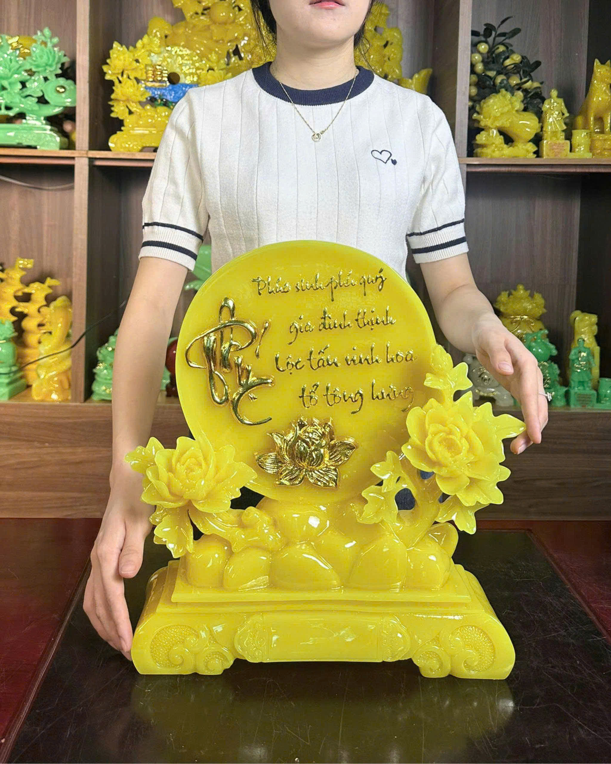 Phúc, Lộc, Thọ: Đại diện cho hạnh phúc, tài lộc, tuổi thọ. Hoa Mẫu Đơn: Biểu tượng của sự giàu sang, phú quý, sắc đẹp. Tích hợp: Sự kết hợp này mang thông điệp cầu mong sự sung túc, thịnh vượng, hạnh phúc và trường thọ cho gia chủ.